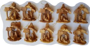 Olive wood Christmas ornaments a set of 10 pieces . High of each pieces is 6.5 cm – 2.6 inch