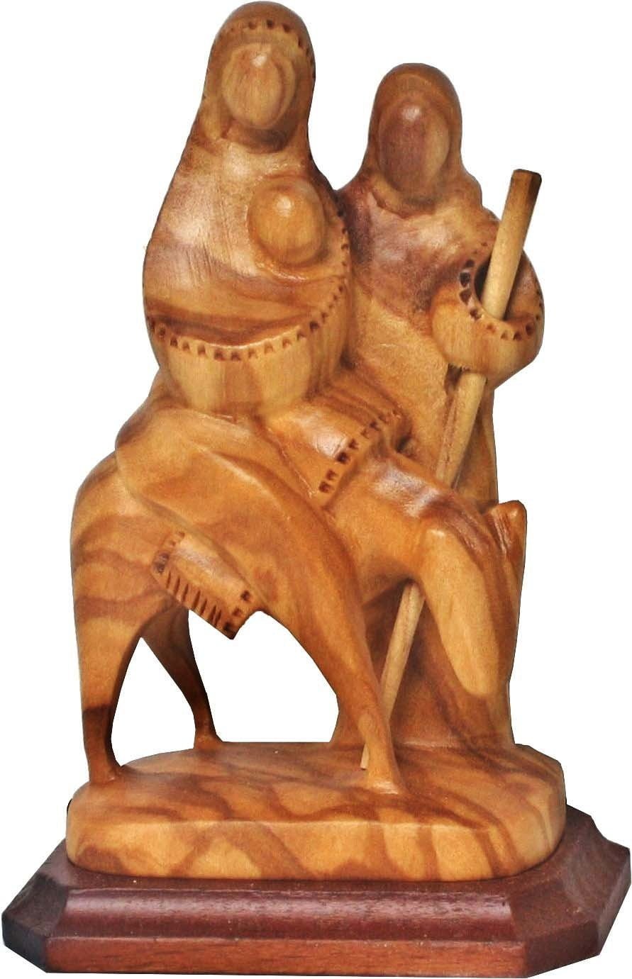 This olive wood handcraft piece is made by Christian people from Bethlehem the holy land Showing Mary with the baby on a donkey, led by Joseph and going into Egypt. It is a unique piece that shows the non-Biblical subject of the Holy Family.